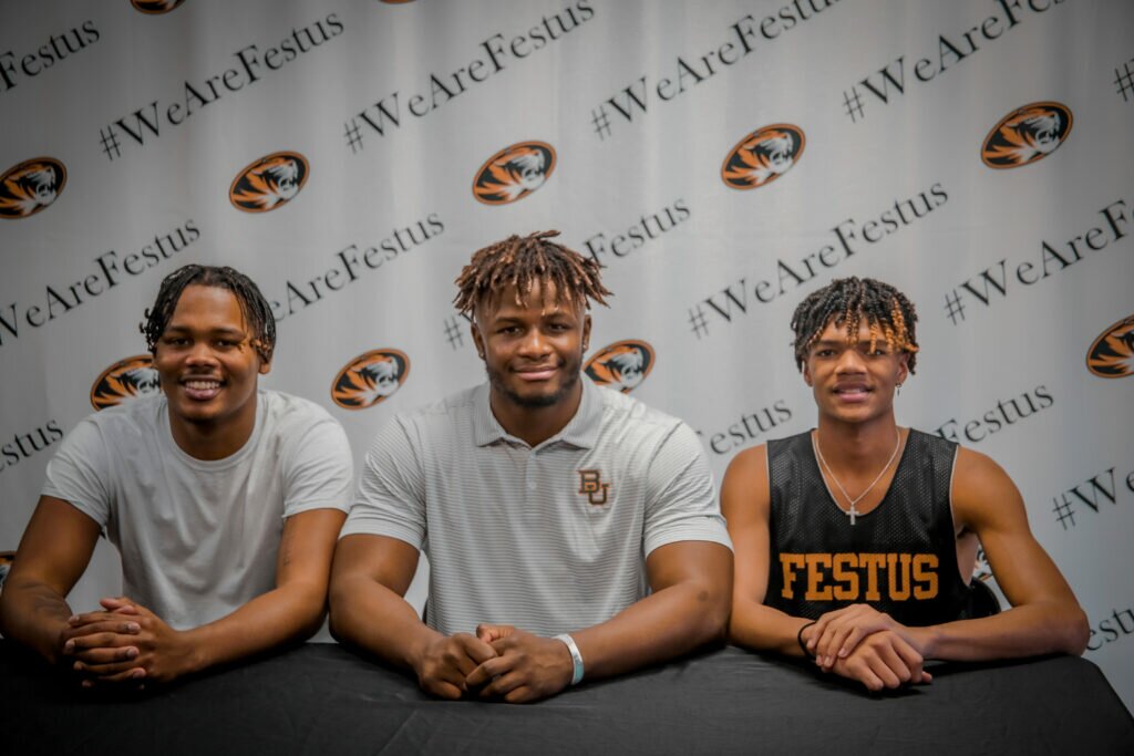 Despite a rollercoaster of a season for the Festus Tigers Varsity Football program, the school was beaming with pride on Wednesday, December 15th as two vital pieces of the organization signed with Division 1 schools on National Letter of Intent Day.